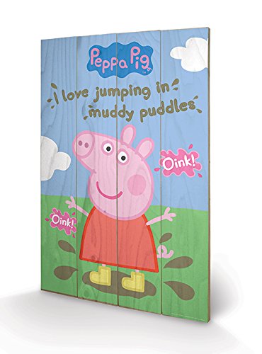 Pyramid International Peppa Pig (Muddy Puddles) -Wood Print 40 x 59cm, Multi-Colour, 40 x 59 x 1.3 cm