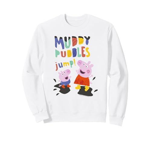 Peppa Pig Muddy Puddles Jump! Peppa & George Having Fun Sweatshirt, Adult Unisex, White, Medium