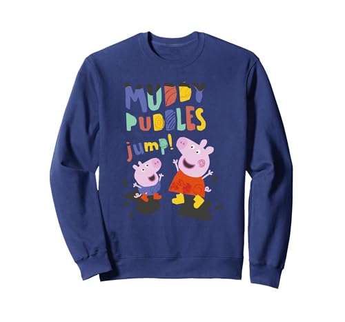 Peppa Pig Muddy Puddles Jump! Peppa & George Having Fun Sweatshirt, Adult Unisex, Navy Blue, Small