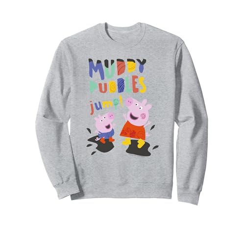 Peppa Pig Muddy Puddles Jump! Peppa & George Having Fun Sweatshirt, Adult Unisex, Heather Grey, Small