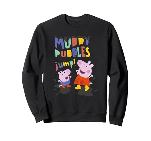 Peppa Pig Muddy Puddles Jump! Peppa & George Having Fun Sweatshirt, Adult Unisex, Black, Medium