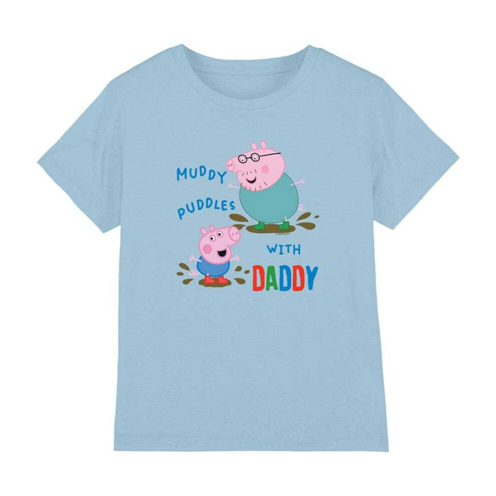 (3-4 Years, Sky Blue) Peppa Pig Childrens/Kids Muddy Puddles With Daddy George T-Shirt