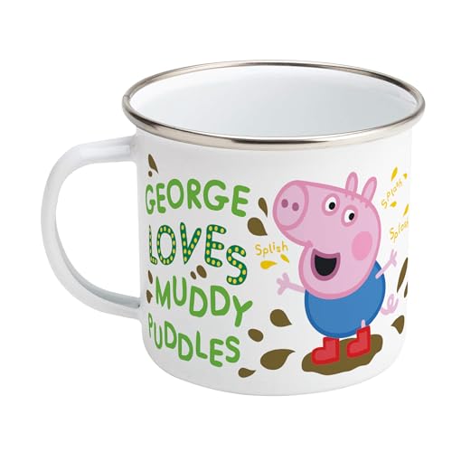 Robert Frederick Peppa Pig Enamel Mug - George Loves Muddy Puddles Design, White