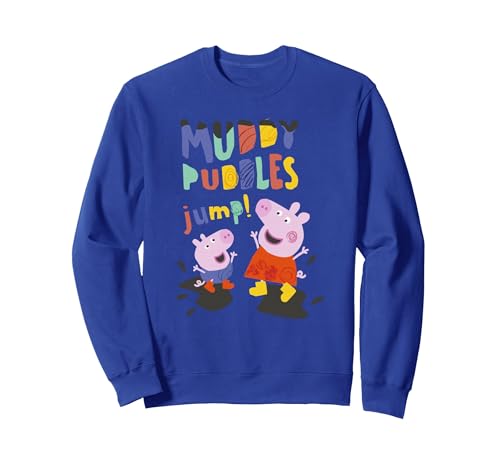 Peppa Pig Muddy Puddles Jump! Peppa & George Having Fun Sweatshirt, Adult Unisex, Royal Blue, Small