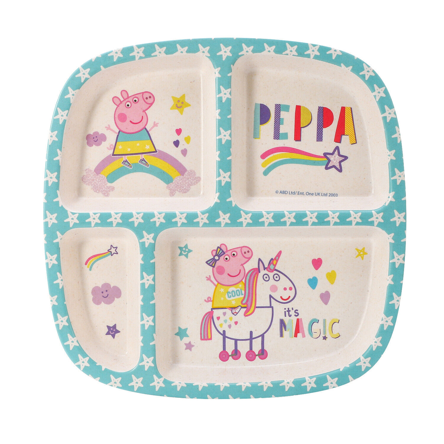 Peppa Pig 4 Section Divided Kids Childrens Toddlers Wooden Colourful Plate