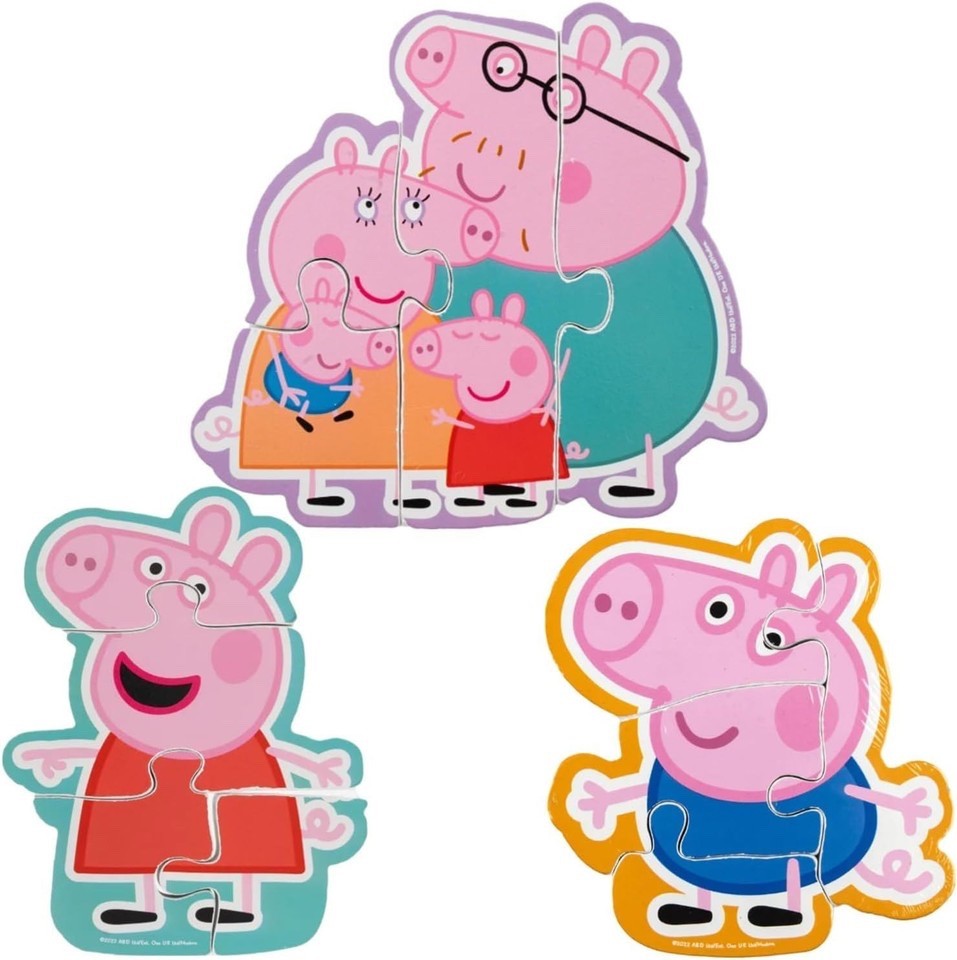 Peppa Pig Wooden Puzzle Set - 3 Puzzles (Mummy, Daddy, George, Peppa Puzzles UK