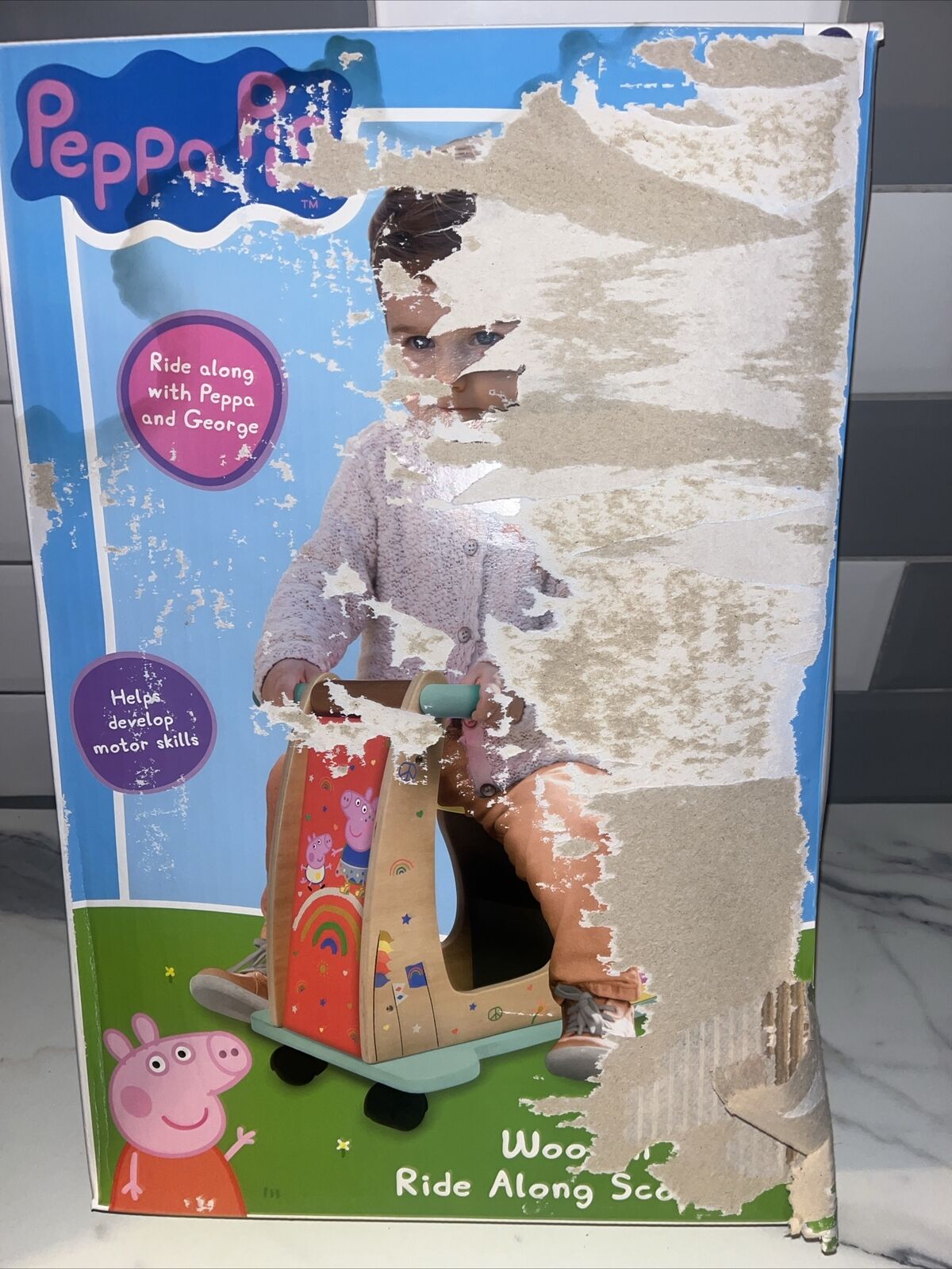 Peppa Pig Wooden Ride on Scooter - 8th Wonder Toy NEW