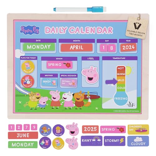 Kid's Wooden Magnetic Daily Calendar - Interactive Learning, Reusable Schedule, Fun Chore Chart - SparkJoy Set for a Colorful Daily Routine! Peppa Pig Wooden Calendar