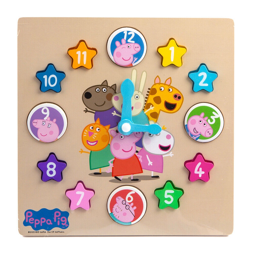 Peppa Pig & Friends Wooden Learning Clock Time & Numbers Shape Sorter Puzzle