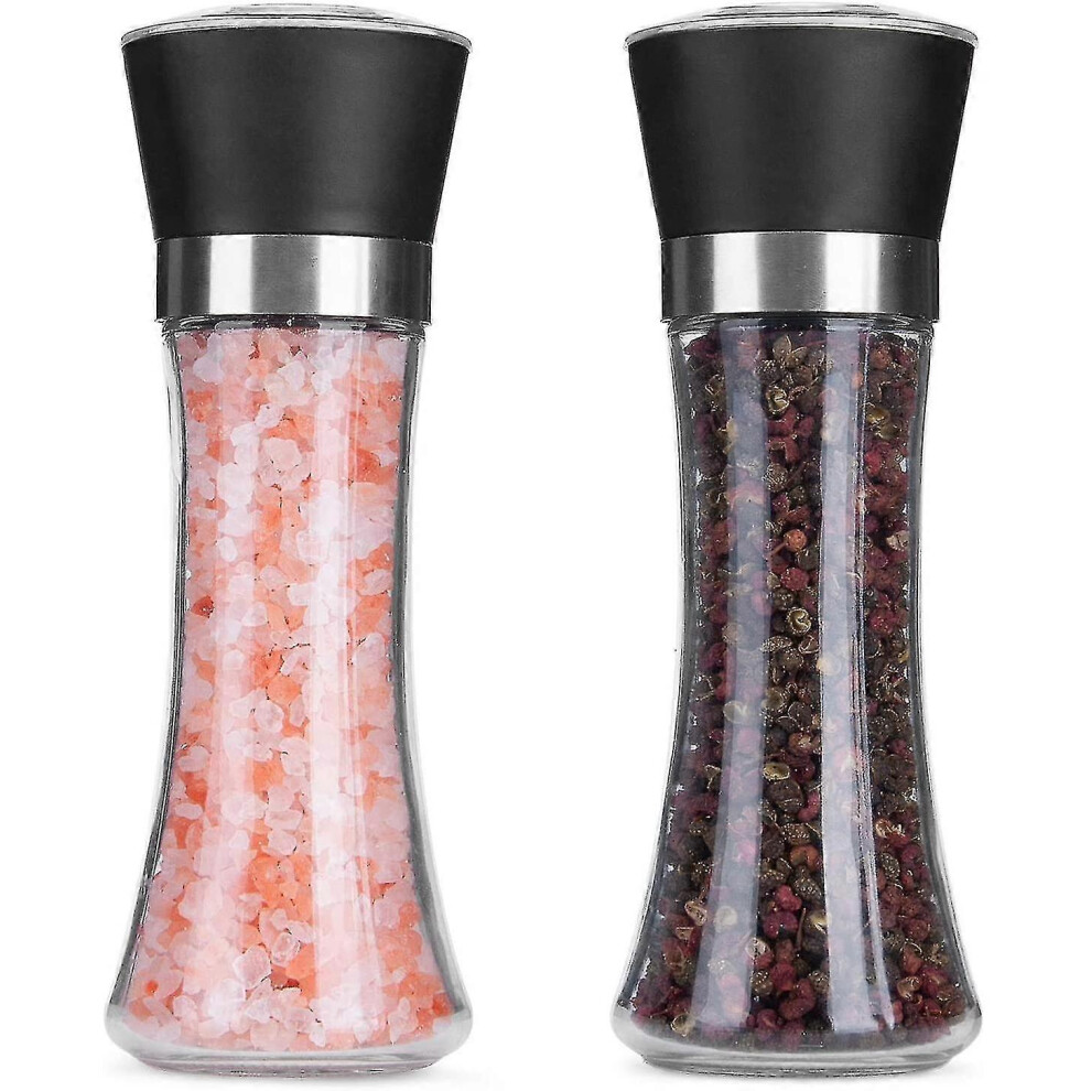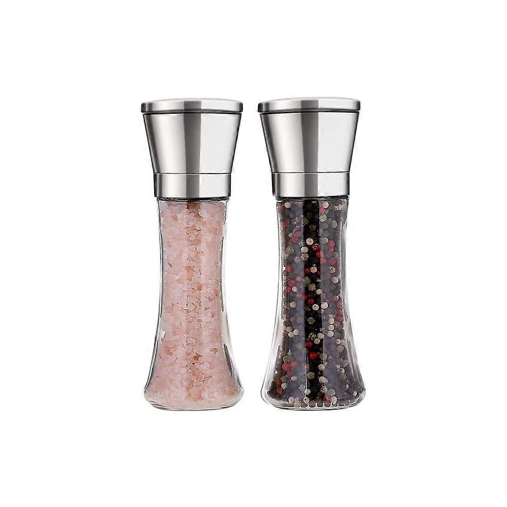 (As show, One size) Premium Salt and Pepper Grinder Set of 2- Brushed Stainless Steel Pepper Mill and Salt Mill, 6 Oz Glass Tall Body, 5 Grade Adjusta