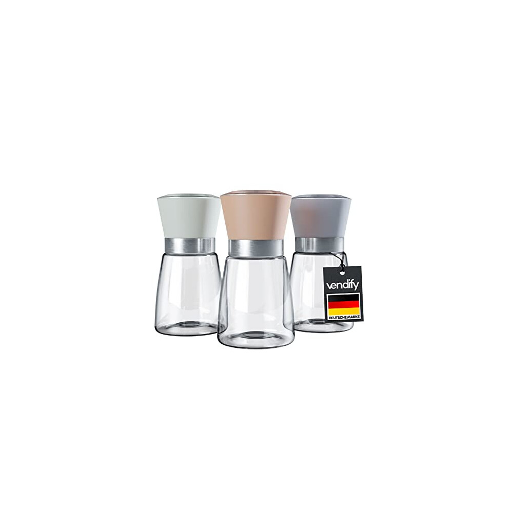 vendify? Set of 3 Spice Mills with Ceramic Grinder Made of Glass and Stainless Steel Adjustable Coarse to Fine Pepper Mill and Salt Mill Elegant