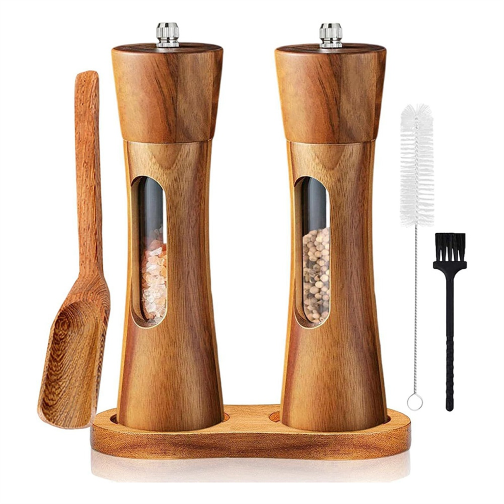 5X(Pepper Mill Wood Salt and Pepper Mill Manual Salt Mill Spice Mill with2272