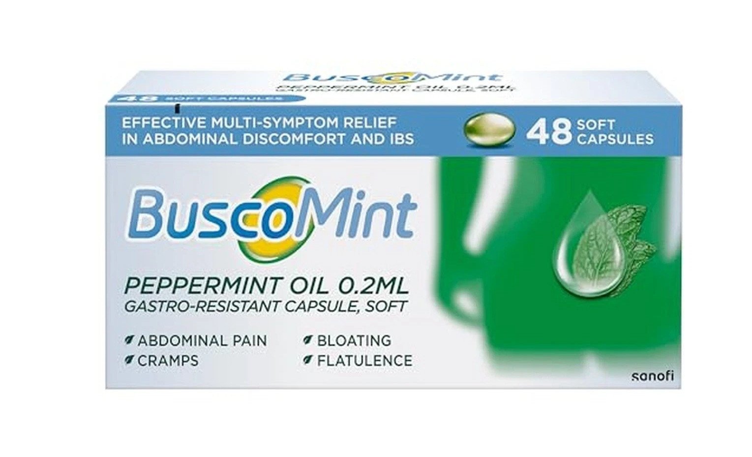 Buscopan Buscomint 0.2 ml Peppermint Oil - IBS Multi-Symptom Treatment - Pack of 48 Soft Gel Capsules