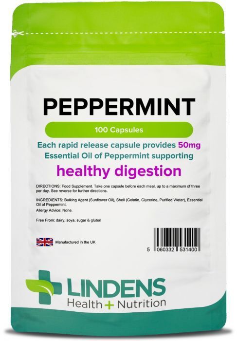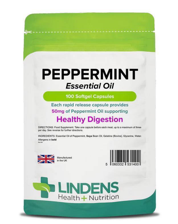 Peppermint Oil 50mg x 100 Capsules; Healthy Digestion; Lindens
