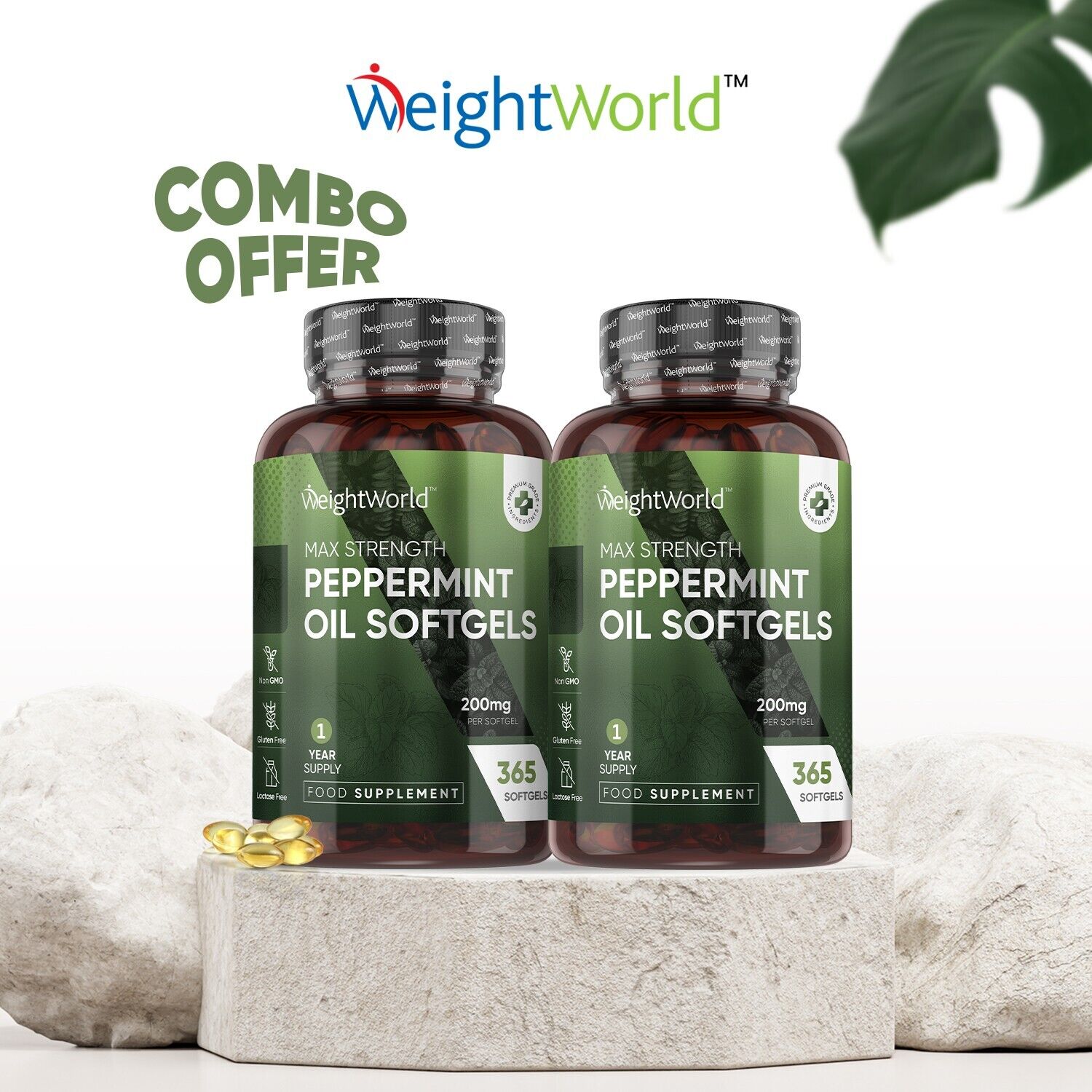 Peppermint Oil Capsules 200Mg - 1 Year Supply (365 Softgels) - Easy to Digest &