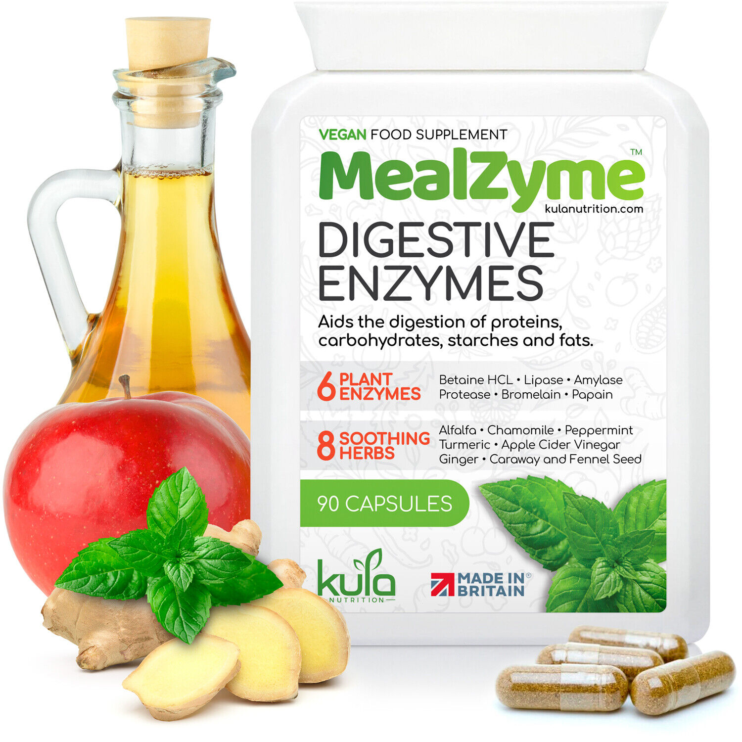 MealZyme - 8 Plant Digestive Enzymes Complex Plus Peppermint - 90 Vegan Capsules