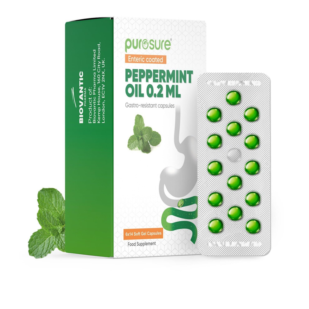 Purosure Enteric Coated Peppermint Oil Capsules - 84 Soft Gel Caps (0.2ml Each), Gastro-Resistant Natural Soothing Mint Sealed in Hygienic Blister St
