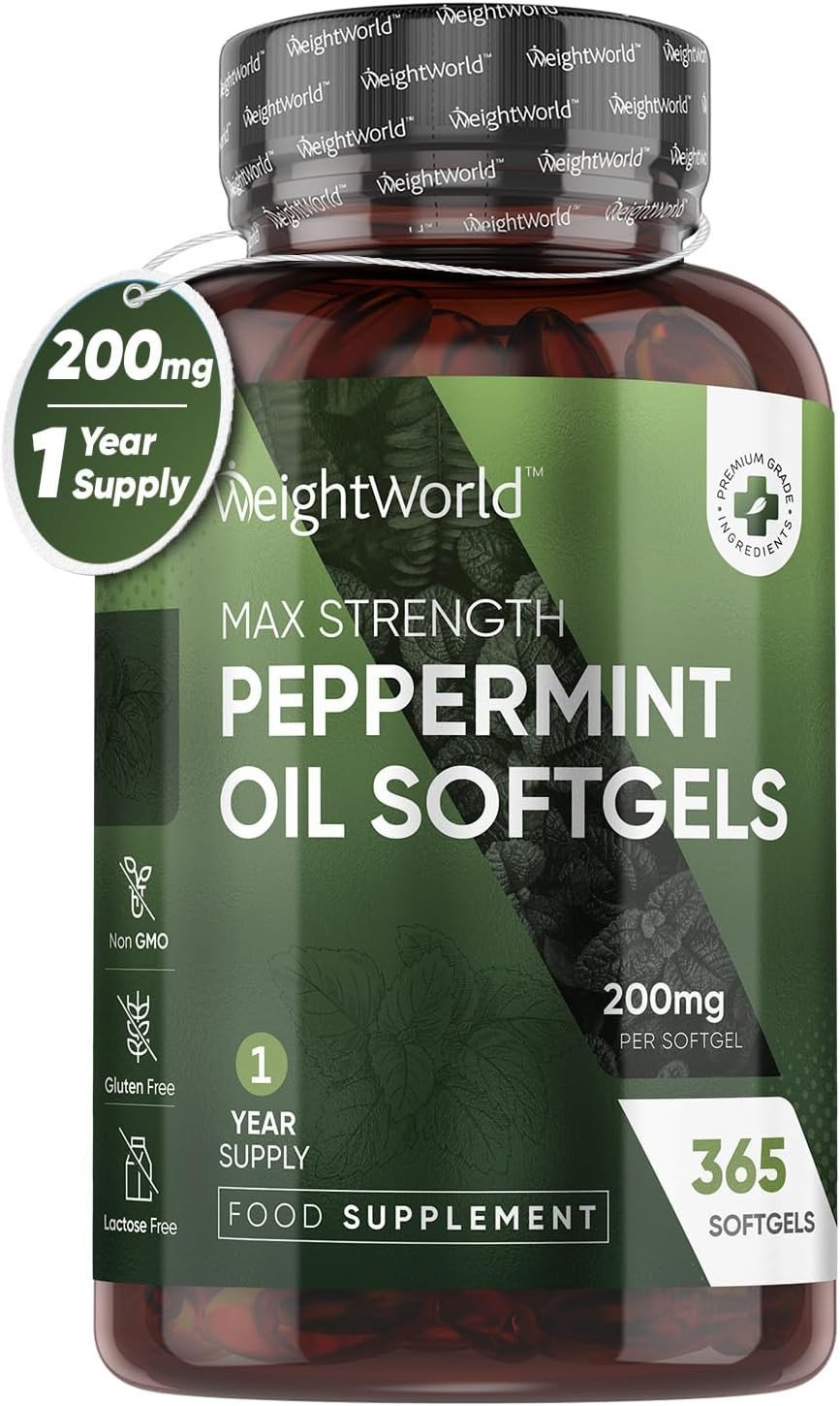 Peppermint Oil Capsules 200Mg - 1 Year Supply (365 Softgels) - Easy to Digest &