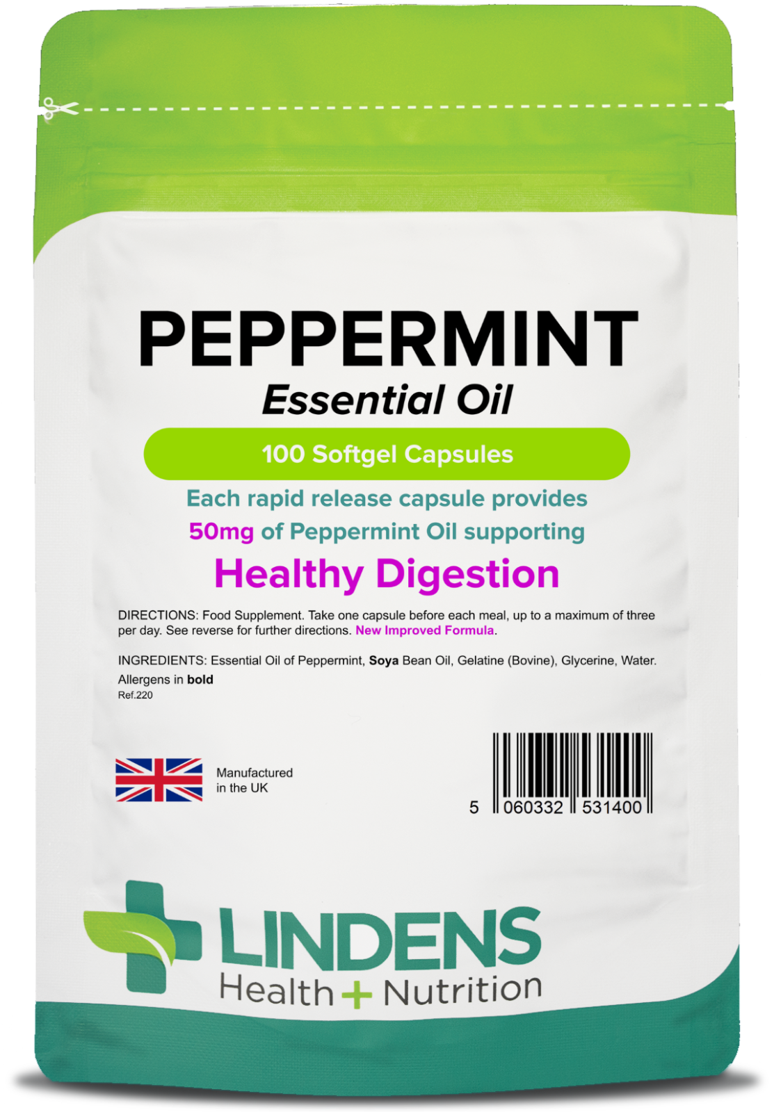 Peppermint Oil 50mg x 100 Capsules; Healthy Digestion; Lindens