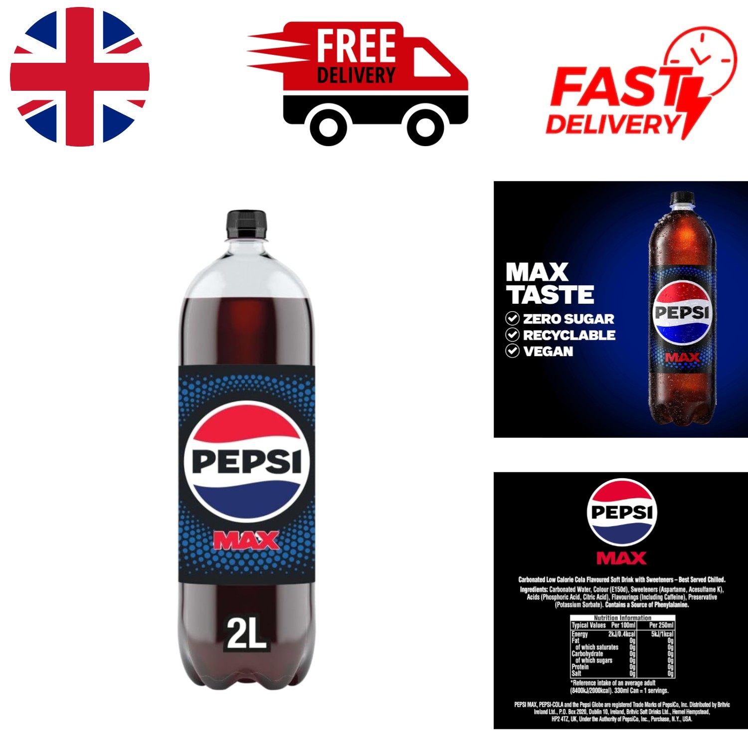 2L Pepsi Max - The Refreshing Cola for Sugar-free Living - Recyclable Bottle
