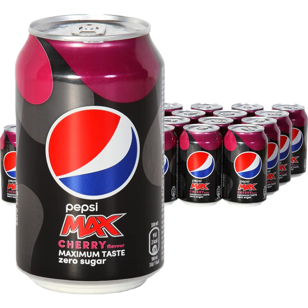 Pepsi Max Cherry - Maximum Cherry Flavor, Zero Sugar, 2 kcal per Can, Vegan