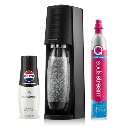 SodaStream - Terra Sparkling Water Maker starter bundle, Quick Connect CO2 System, Includes 60L Gas Cylinder, 1 x 440ml Pepsi Max, BPA-Free 1L Bottle, Eco-Friendly & Reduces Plastic Waste, Black