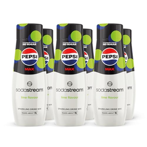 Flavours Pepsi Max Lime Sparkling Drink Mix, Soda & Fizzy Drink Maker Concentrate, Diet Pepsi with Maximum Taste & No Sugar, Official Pepsi Cola x SodaStream Syrup - 6 x 440ml Multi Pack