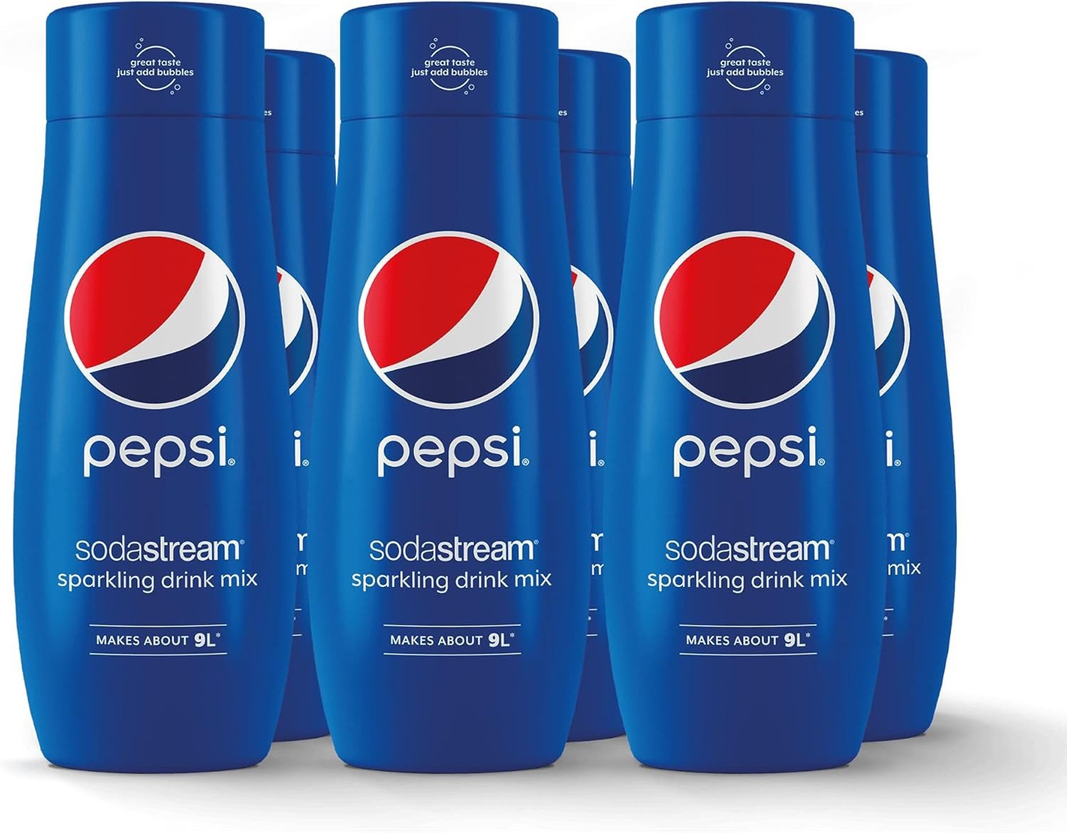 SodaStream Flavours Pepsi Sparkling Drink Mix, Soda & Fizzy Drink Maker Concentrate, Original Recipe, Just Add Sparkling Water, Official Cola x SodaStream Syrup - 6 x 440ml Multi Pack