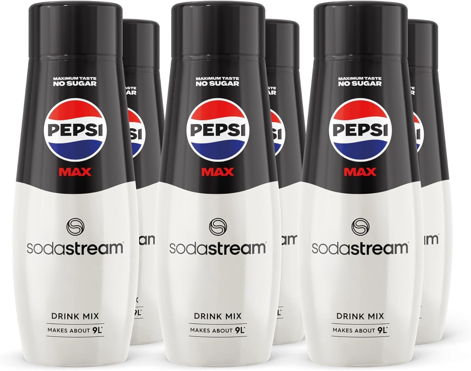Flavours Pepsi Max Sparkling Drink Mix, Soda & Fizzy Drink Maker Concentrate, Diet Pepsi with Maximum Taste & No Sugar, Official Pepsi Cola x SodaStream Syrup - 6 x 440ml Multi Pack