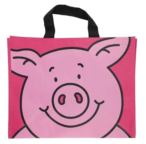 London Food Hall Reusable Shopping Bag with Percy Pig Design, Pink, Tote Bag with Black Handles