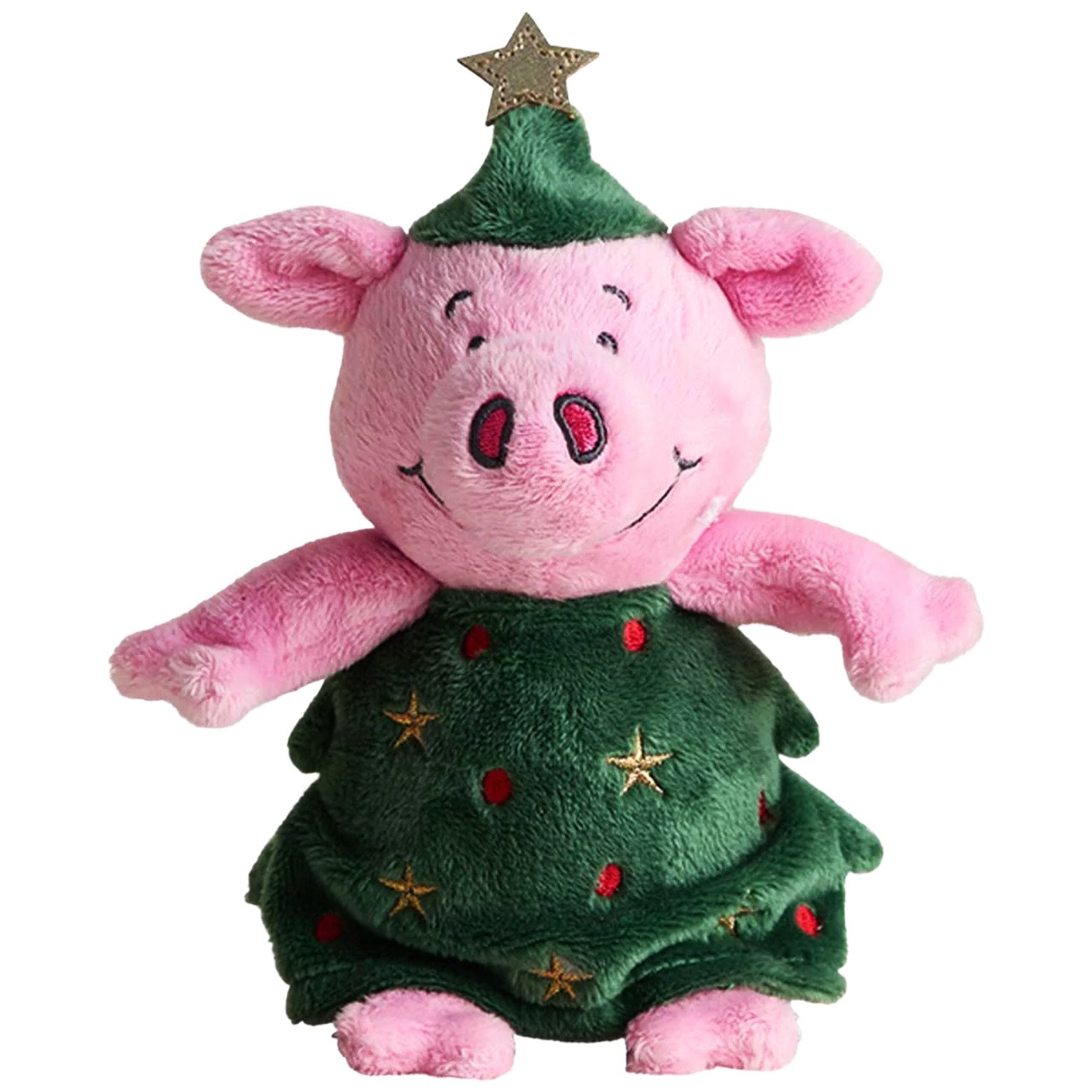 M&S Percy Pig Christmas Tree Topper, Pink Plush with Green Festive Outfit, Decorative Star