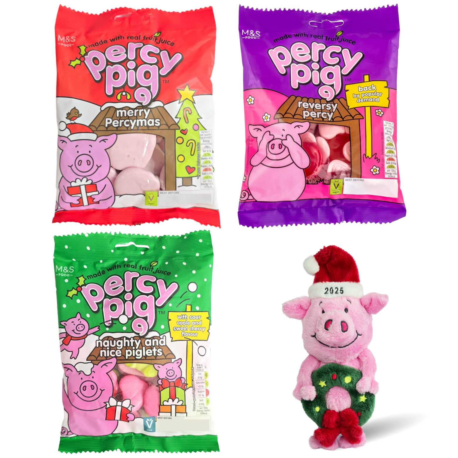 M&S Percy Pig Gift Set, Chewy Sweets Bags with Hanging Christmas Decoration Toy