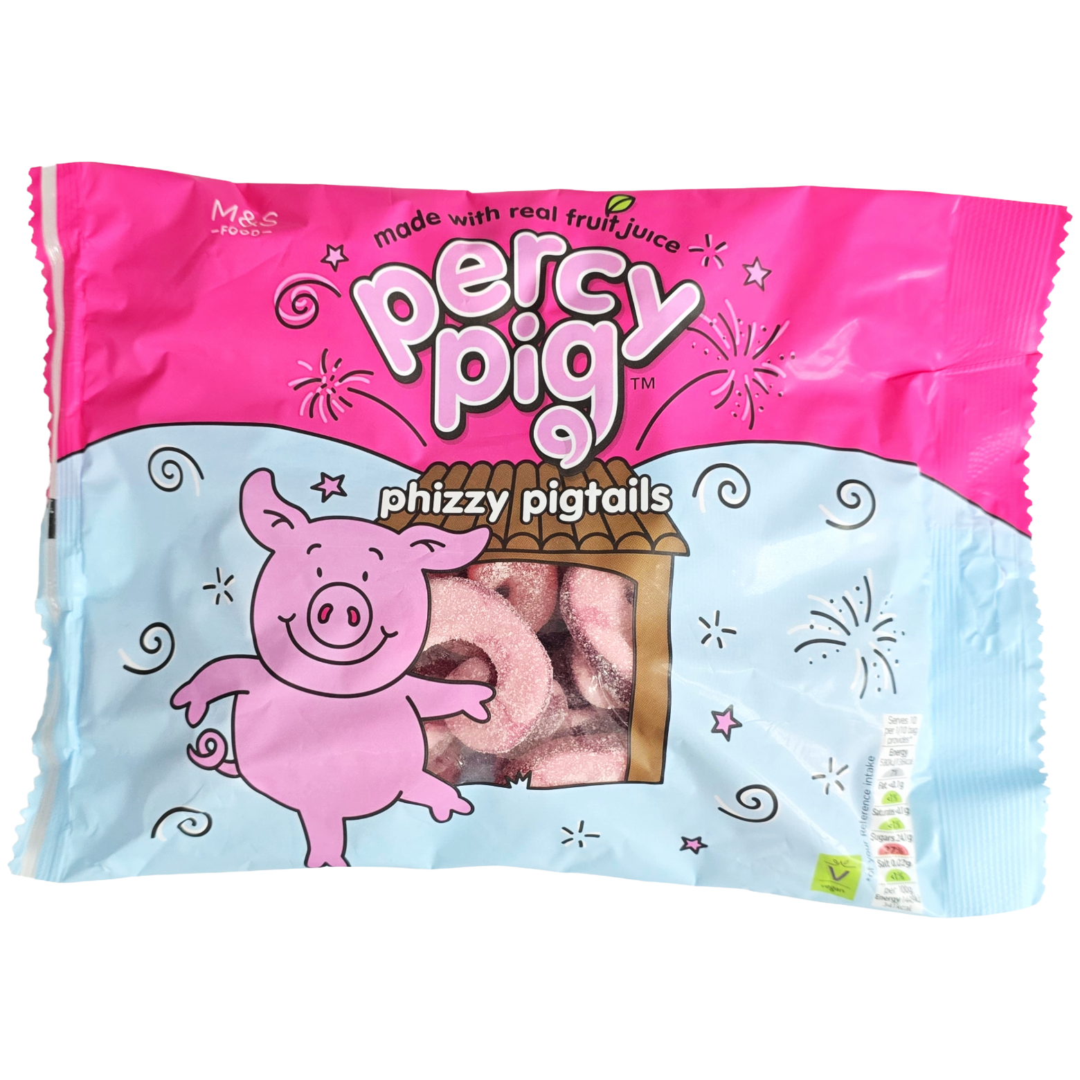 M&S Percy Pig Phizzy Pigtails 400g, Fruit Juice Flavoured Chewy Sweets