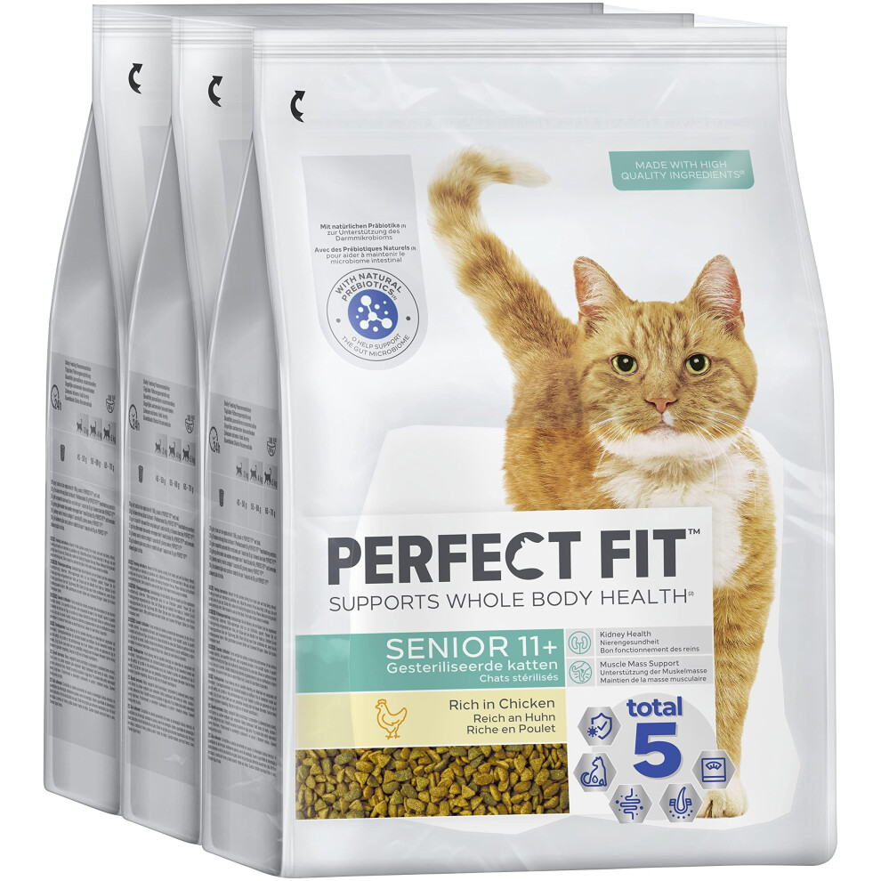 Perfect Fit Senior 11+ Complete Dry Cat Food for Senior Cats Aged 11+ Years, Rich in Chicken, 3 Bags (2.8 kg)