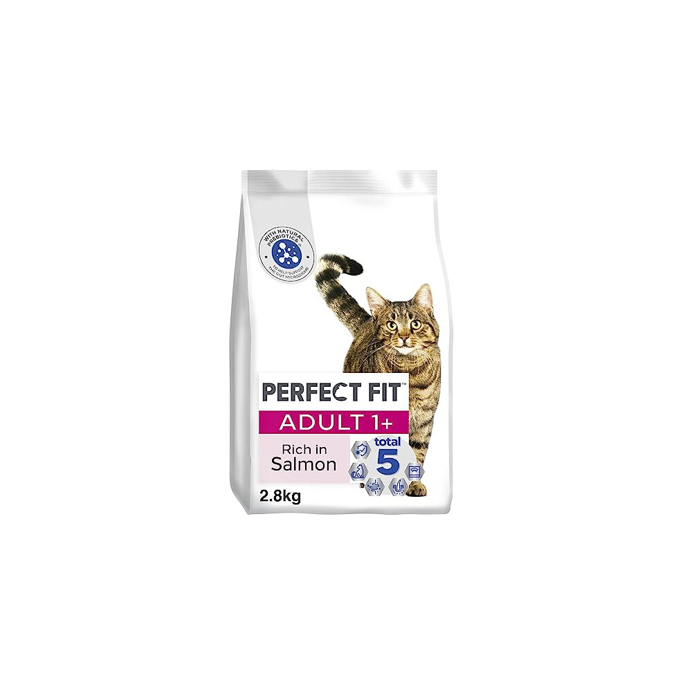 Perfect Fit Adult 1+ Complete Dry Cat Food for Adult Cats Aged 1+ Years, Rich in Salmon, 3 Bags (2.8 kg)