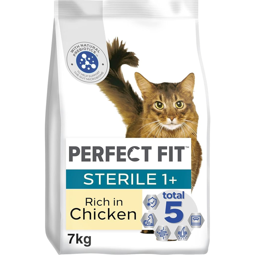 Perfect Fit Sterile Adult 1+ Complete Dry Cat Food for Adult Cats Aged 1+ Years, Rich in Chicken, 1 Bag (7 kg)