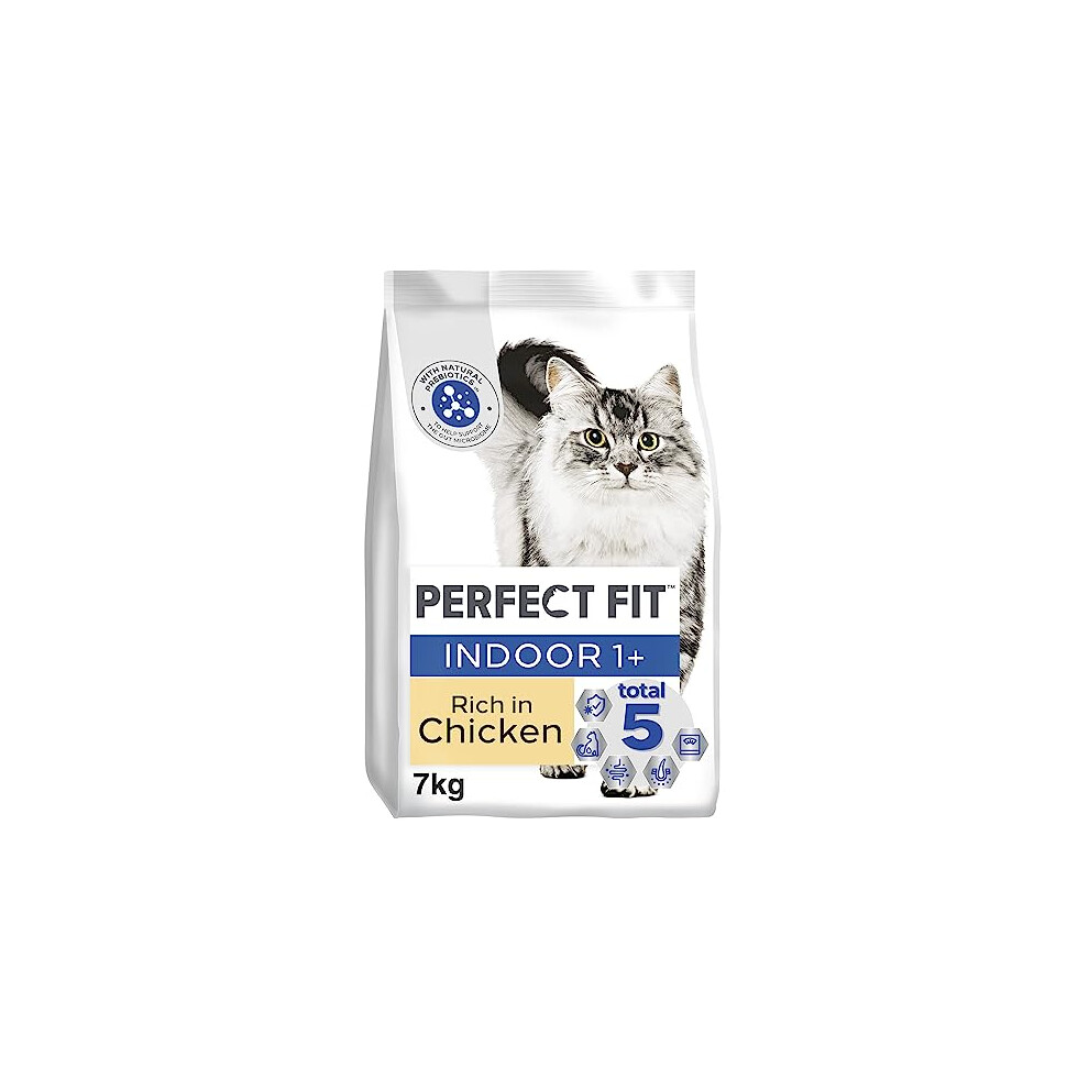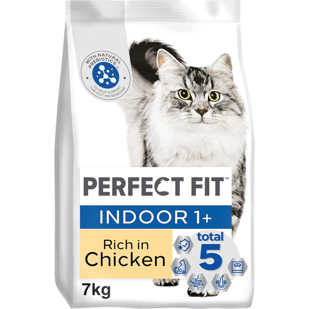 Perfect Fit Indoor Adult 1+ Complete Dry Cat Food for Adult Cats Aged 1+ Years, Rich in Chicken, 1 Bag (7 kg)