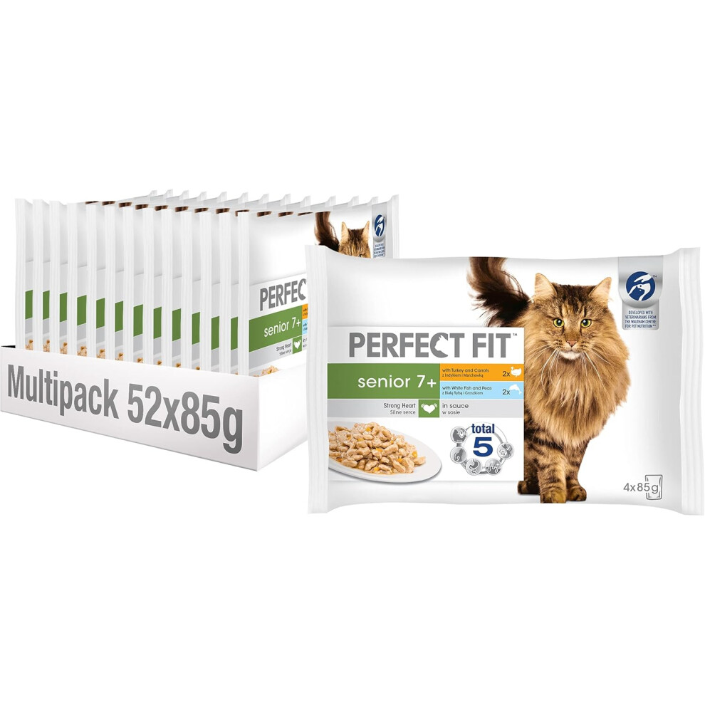 Perfect Fit 7+ Wet Cat Food - Advanced nutrition for senior cats, mixed selection in sauce, 52 pouches - Pack of 13 (13 x 4 Pouches x 85 g)