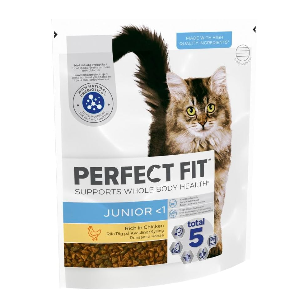 Perfect Fit Junior 1 Complete Dry Cat Food for Junior Cats Under 1 Year, Rich in Chicken, 4 x 750g