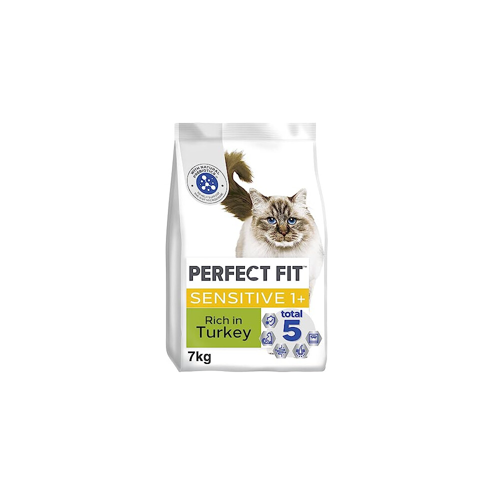 Perfect Fit Sensitive Adult 1+ Complete Dry Cat Food for Adult Cats Aged 1+ Years, Rich in Turkey, 1 Bag (7 kg)