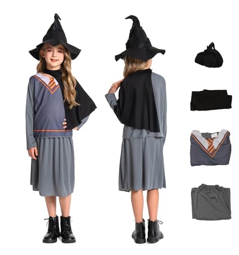 Seaehey Girl's Wizard Costume - Magic Robe Set with Shirt, Skirt, Hat - Perfect for Girls' Magic Parties & Role Play