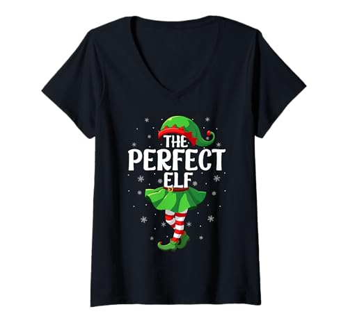 Womens Perfect Elf Christmas Girls Women Elf Squad Xmas Family V-Neck T-Shirt