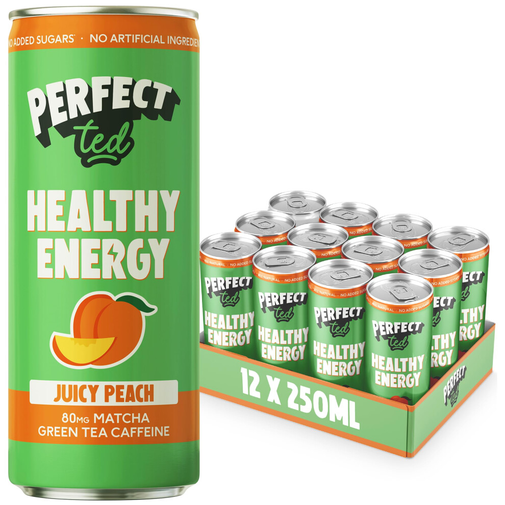 Perfect Ted Healthy Energy Drink | Juicy Peach Box of 12x 250ml Cans | Clean Energy Drink | All-Natural Sustained Energy | 43KCAL | 80MG Caffeine Per