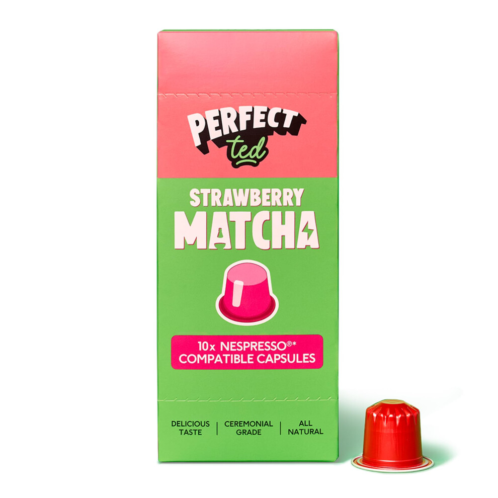 PerfectTed Strawberry Matcha Pods, Ceremonial Grade Japanese, 60 Nespresso Compatible Capsules, Quick & Easy Sweet Lattes | with L-Theanine | Natural
