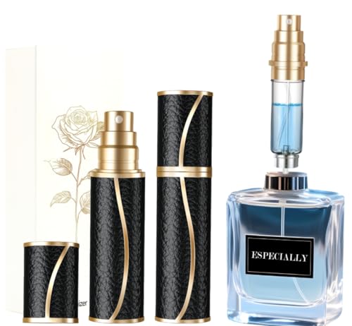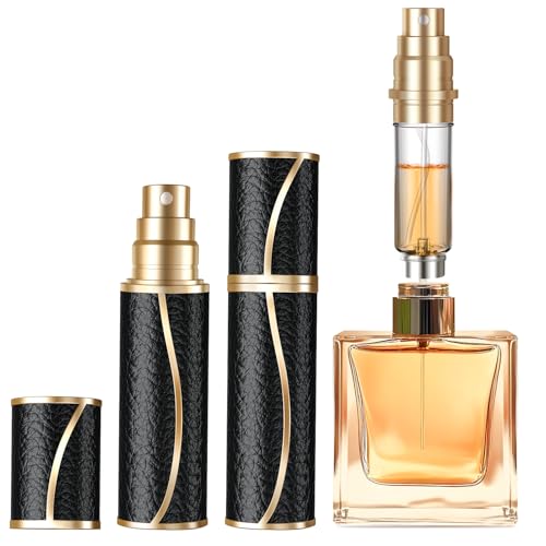 CWCKDJDH 5ML Portable Compact Leather Perfume Bottle Multifunction Sprayer Refillable Empty Perfume Atomizer for Travel Spray Bottle 1PC, gold black, One Size