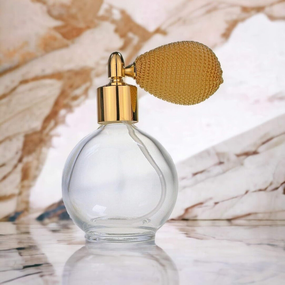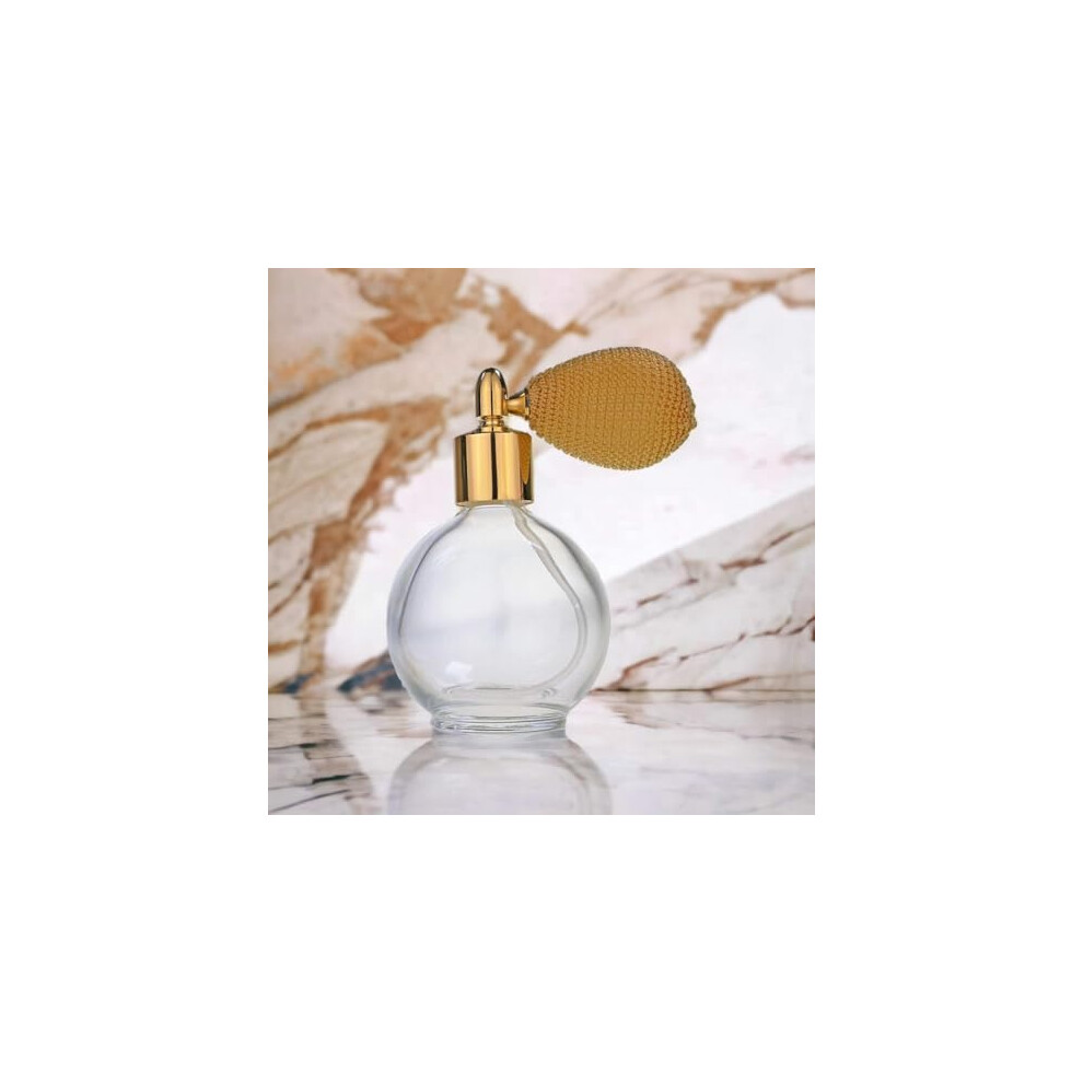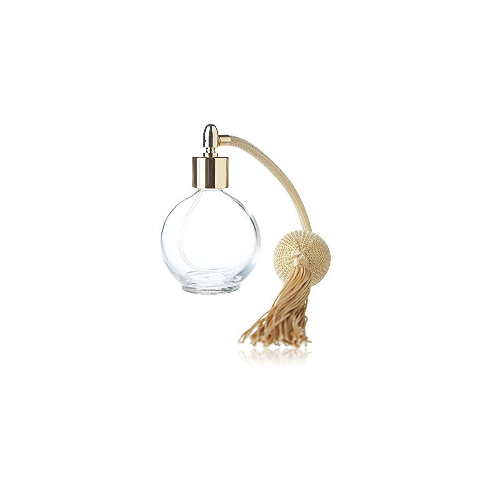 78ml Classic Round Perfume Bottle Atomizer with bulb pump, Filling Funnel & Gift Box (Gold with gold metal)