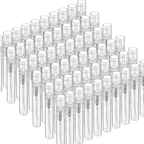 Fandamei 60 Pack 3ml Mini Spray Bottle, Clear Plastic Empty Cute Perfume Atomizer Bottle for Cleaning, Travel, Essential Oils, Perfume.