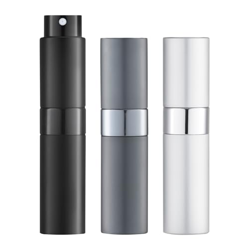 LISAPACK 8ML Atomizer Perfume Spray Bottle for Travel (3 PCS) Empty Cologne Dispenser, Portable Sprayer (Black, Silver, Grey)