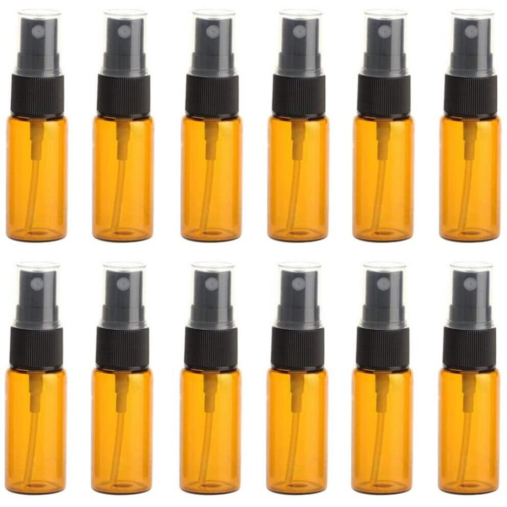12PCS Amber Empty Refill Glass Spray Vial Bottle Jar Pots with Black Nozzle and Clear Cap Makeup Water Perfume Cosmetic Sample Packing Storage