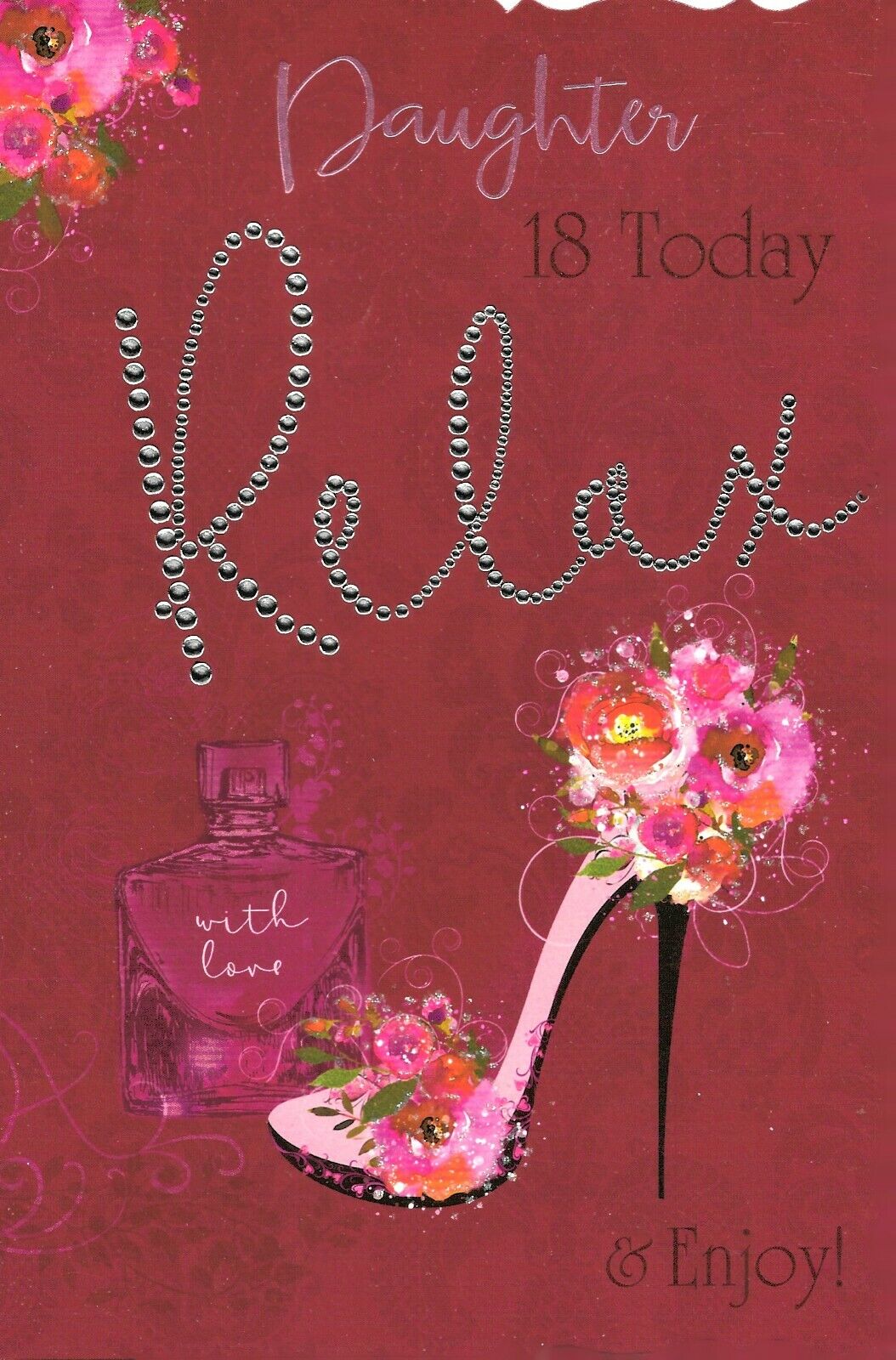 LARGER SIZE 18th BIRTHDAY CARD FOR DAUGHTER - AGE 18 - HIGH HEEL SHOE, PERFUME